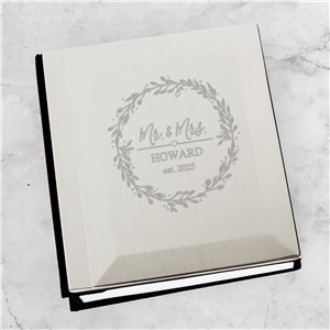 .Engraved Initial With Wreath Anniversary Gold Trim Beveled Glass Frame
