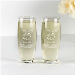 .Engraved Wedding Anniversary Toasting Stemless Flute Set