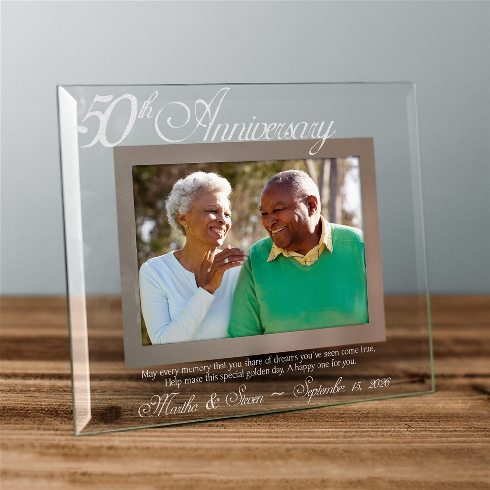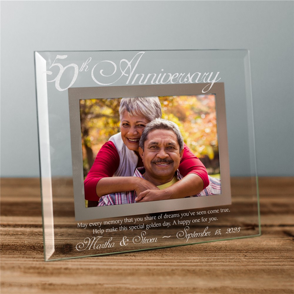50th Anniversary Glass Picture Frame reads: May every memory that you share of dreams you've seen come true, Help make this special golden day, A Happy one for you.