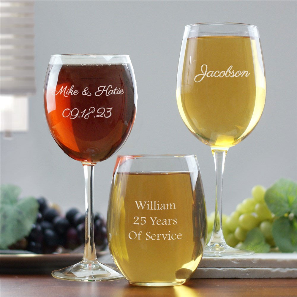 Spice up your next wine tasting event with one of these crystal clear & elegant wine glasses. With our any message design, your wine glass may read any three line message (up to 17 letters per line) & you may choose to display your message in script or block font. These fantastic glasses make great personalized aunt gifts, sister gifts, and much more. Personalized wine glasses make ideal gifts for your favorite wine connoisseur. Consider this as a personalized Mother's Day Gift, Wedding Anniversary gift and more! There is no way to go wrong with with these glasses as gifts for aunts, mom, grandma and more!
