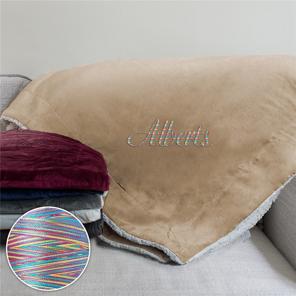 Any Name Embroidered Sherpa Blanket with Rainbow ThreadAny Name Embroidered Sherpa Blanket with Rainbow ThreadAny Name Embroidered Sherpa Blanket with Rainbow Thread