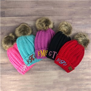 .Embroidered Monogram Kid's Blue Cable Knit Hat