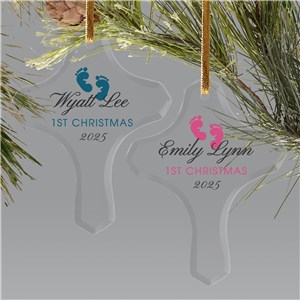 .Personalized Babys First Christmas Footprints Glass Holiday Ornament