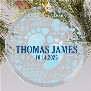 .Personalized Baby's First Christmas Word-Art Round Glass Ornament