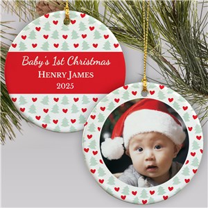 .Initial Personalized Baby First Christmas Ceramic Holiday Ornament