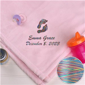 .Personalized Baby Girl Mink Blanket with Rainbow Thread