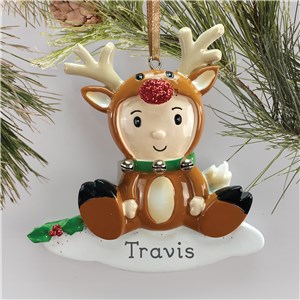 .Personalized Babys First Christmas Footprints Glass Holiday Ornament