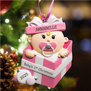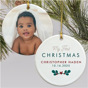 .Initial Personalized Baby First Christmas Ceramic Holiday Ornament