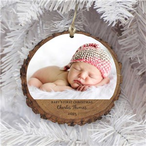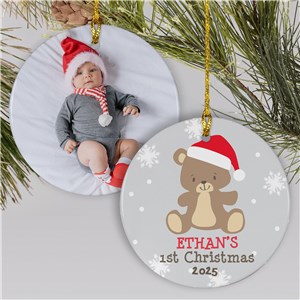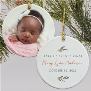 Personalized Baby's First Christmas White Snowflake Photo Ornament