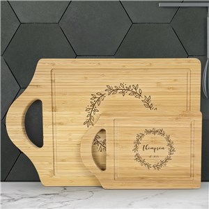 .Engraved Family Name and Initial Bamboo Cutting Board