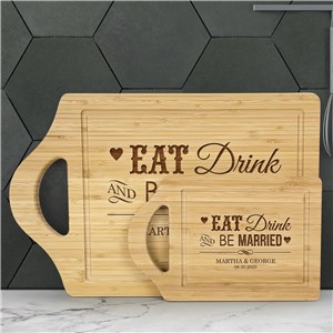 .Eat Drink & Be Merry Engraved Bamboo Paddle Cutting Board