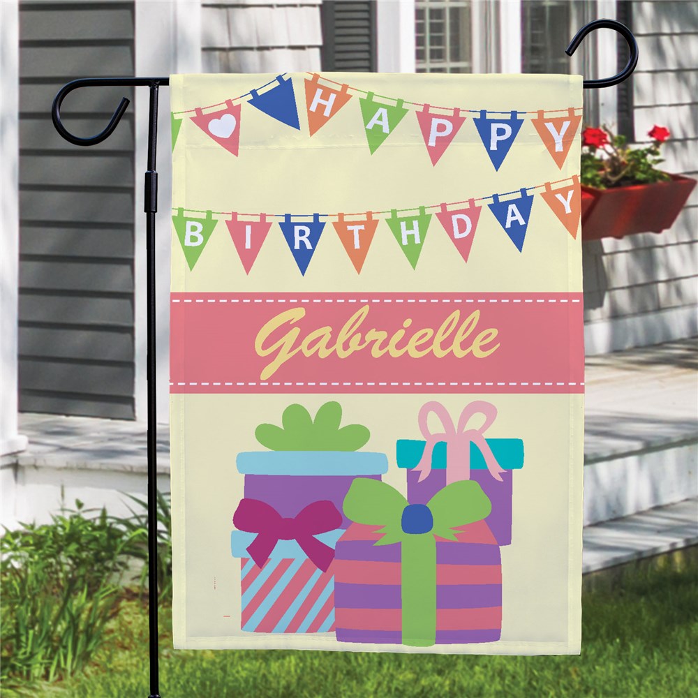 Add more excitement to her birthday celebration by announcing it right at the door. These Birthday Personalized Garden Flags may be displayed in the yard, garden, door or window to give her the birthday shout out she deserves. These birthday Custom garden Flags may be personalized with any name. (up to 12 letters)