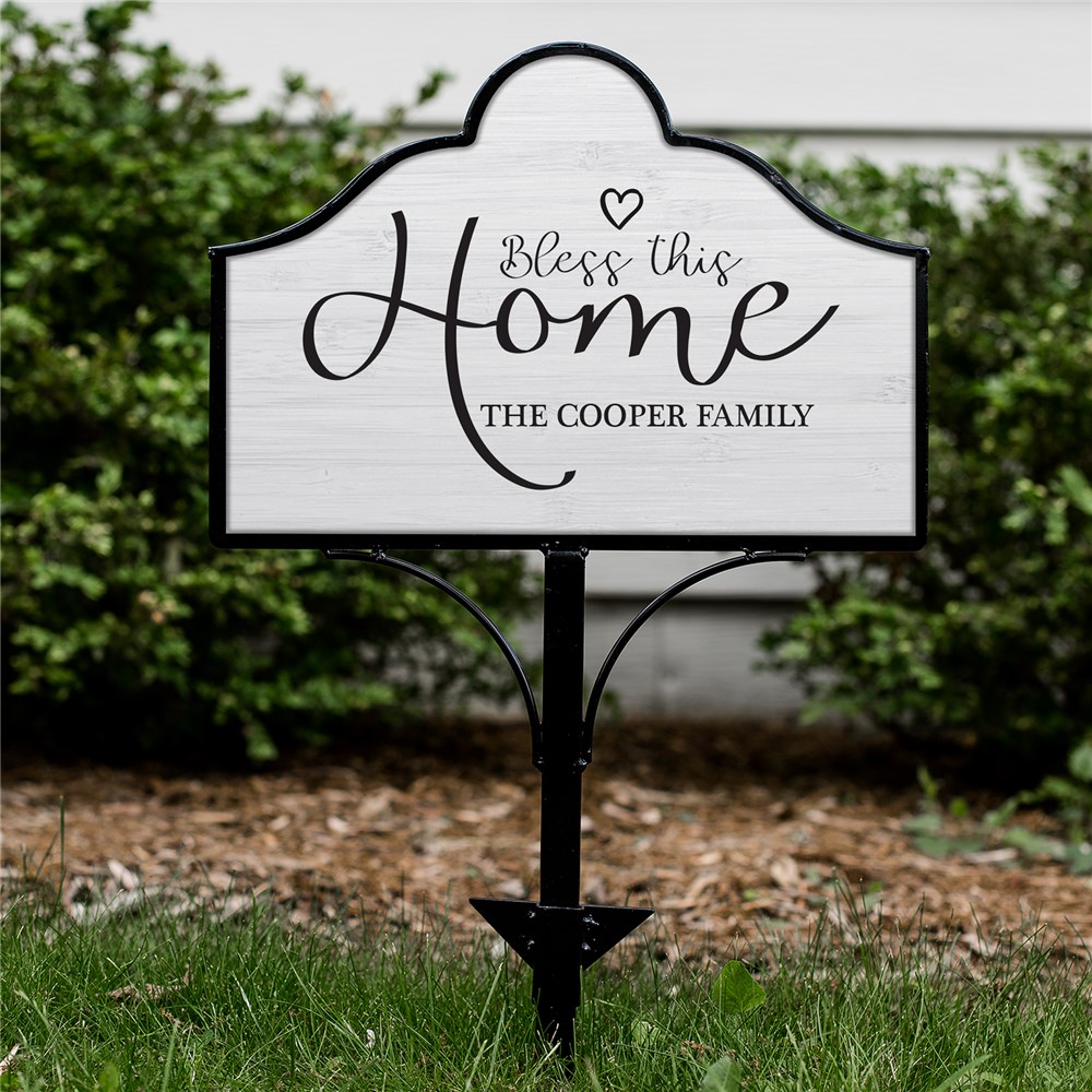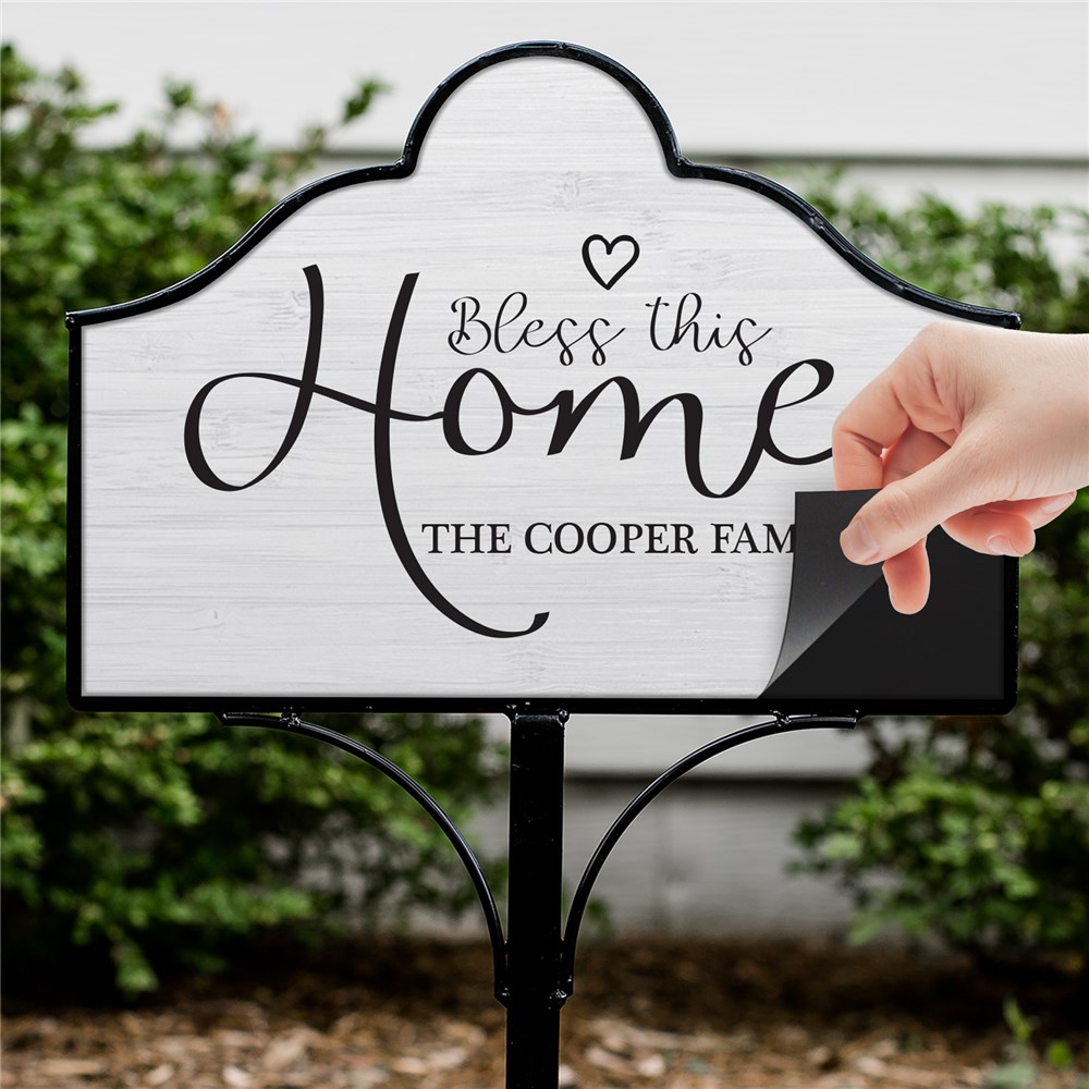 Our Bless This Home Personalized Magnetic Sign Set can be placed in your yard for all your guest giving them a warm welcome.