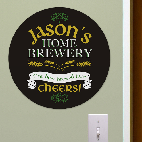 Any beer lover or brewer will appreciate this personalized wall sign for his home bar. Surprise him with this for his birthday, the holidays, or Father's Day. It will show off his interests and make your home bar area look even more unique. This brewery wall sign is a gloss white hardboard sign that measures 14" in diameter. It comes with clear hanging tabs for easy wall display and includes personalization of any name. It should be on your shopping list for any beer lover.