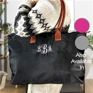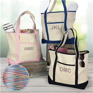 .Embroidered Monogram Waffle Weave Cosmetic Bag