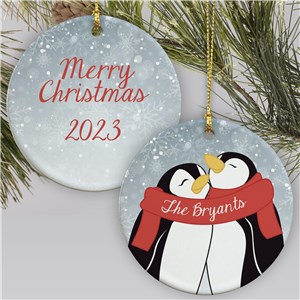 .Welcome Hugging Penguin Couple Personalized Garden Flag