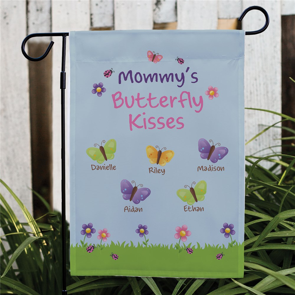 Butterfly kisses will fill your home when this colorful garden flag is displayed in your yard or flower bed. It is a wonderful way to welcome your children or grandchildren with open arms. Personalize this garden flag with any title and up to 20 names. Spring Decor is easy with GiftsForYouNow.