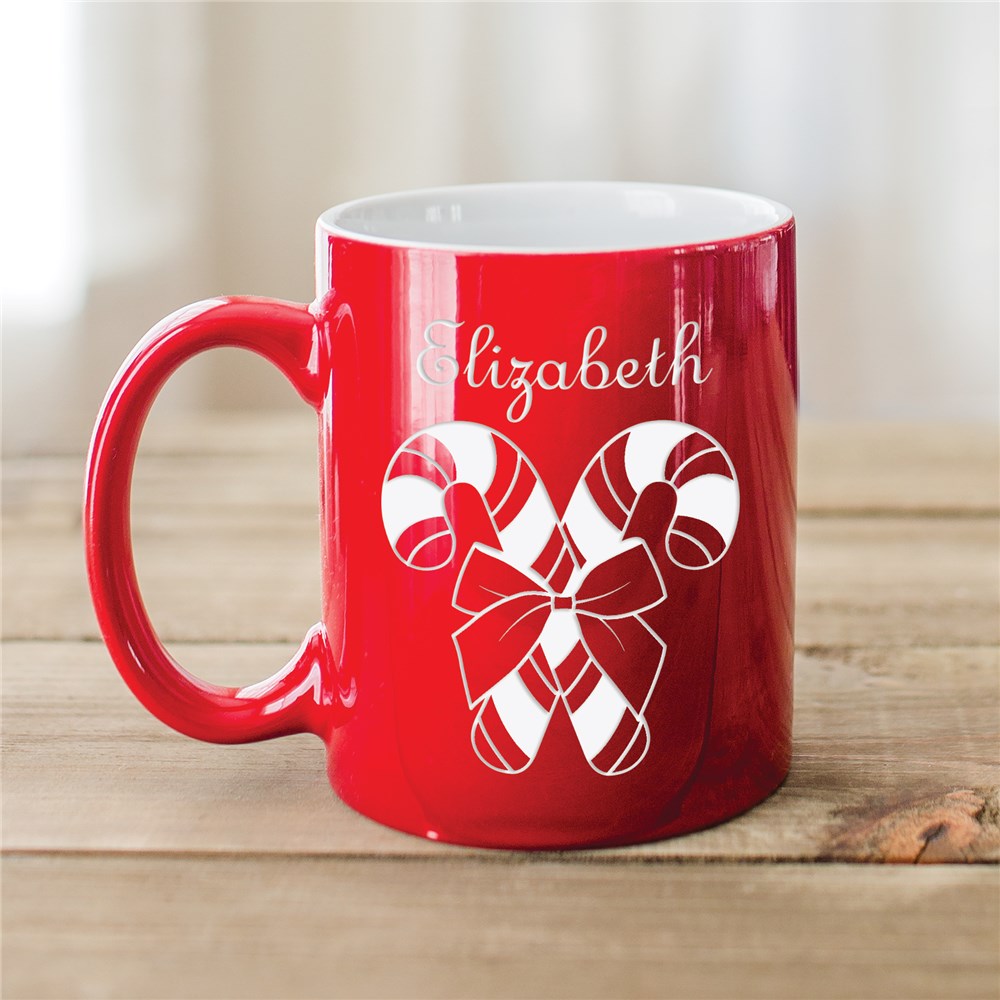 Candy Cane Engraved Red Mug | Customizable Coffee Mugs
