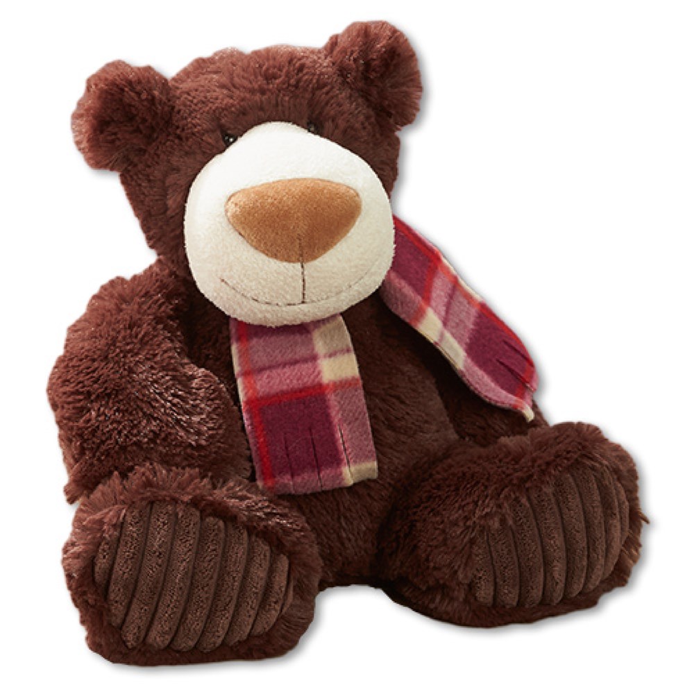 Chocolate Chip Frappe Bear is a pleasantly soft teddy who measures 12" tall. He wears a plaid scarf so he is all set for the winter season.
