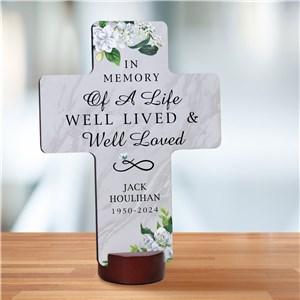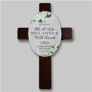 .Personalized Marble Print with White Flowers Cross Keepsake
