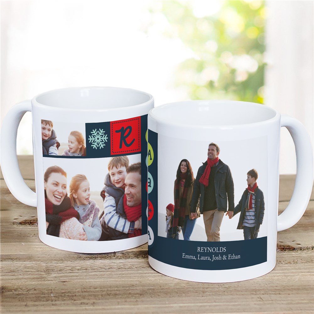 Celebrate family and the holiday season each time you use this festive coffee mug. Featuring any three photos, your family initial and any two line message, this personalized coffee mug makes an excellent gift for Christmas.