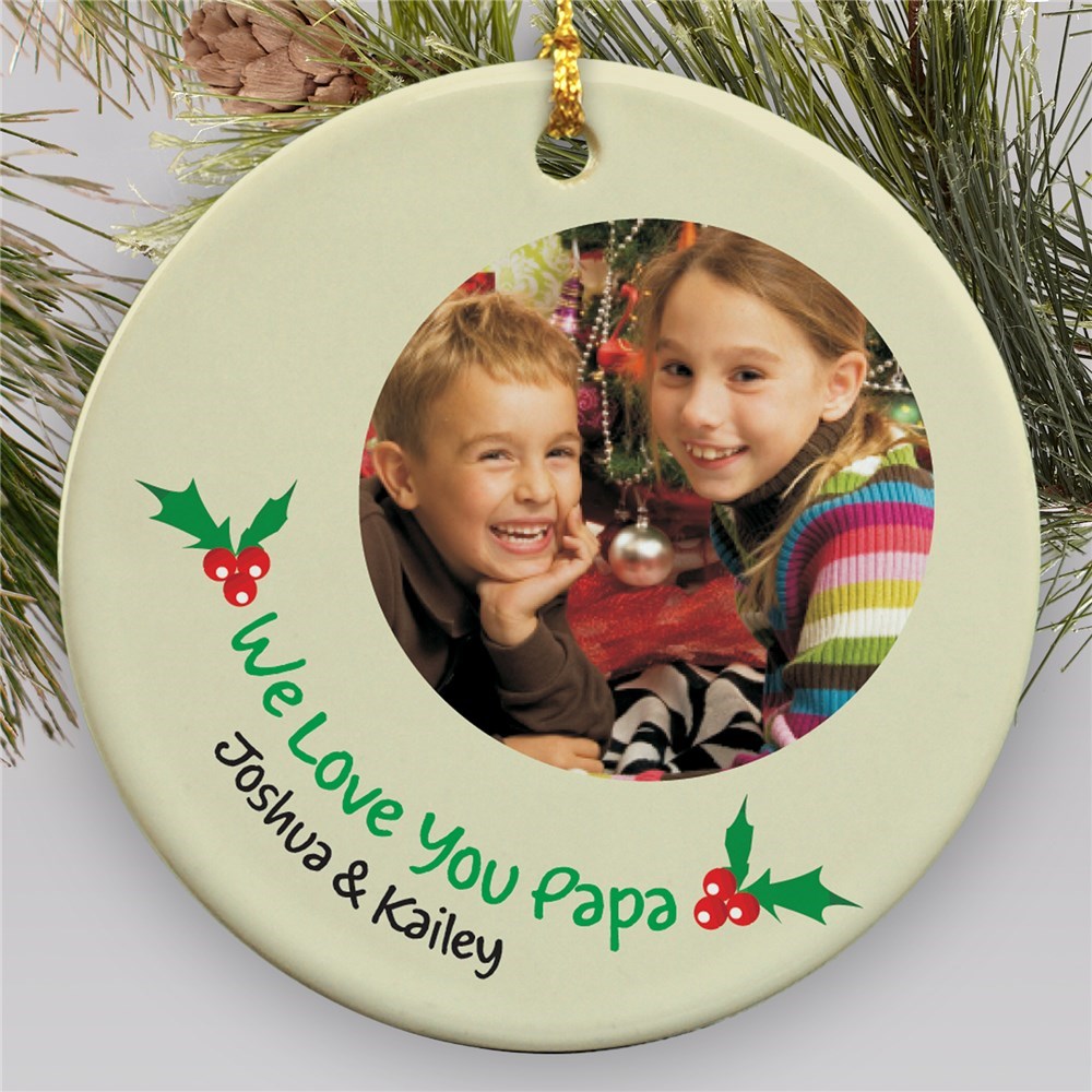 Take your favorite family holiday photo and create a photo ornament to give your friends and family members as a holiday gift this year! It's unique, one of a kind, and definitely something that those closest to you would love to display on their family's tree. They'll be touched to receive a Picture Ornaments so sentimental and meaningful. It will make their holiday tree look even more special. Personalize with any upload of your favorite photo and two line custom message. Nothing makes a more unique ornament than one with a family photo on it!