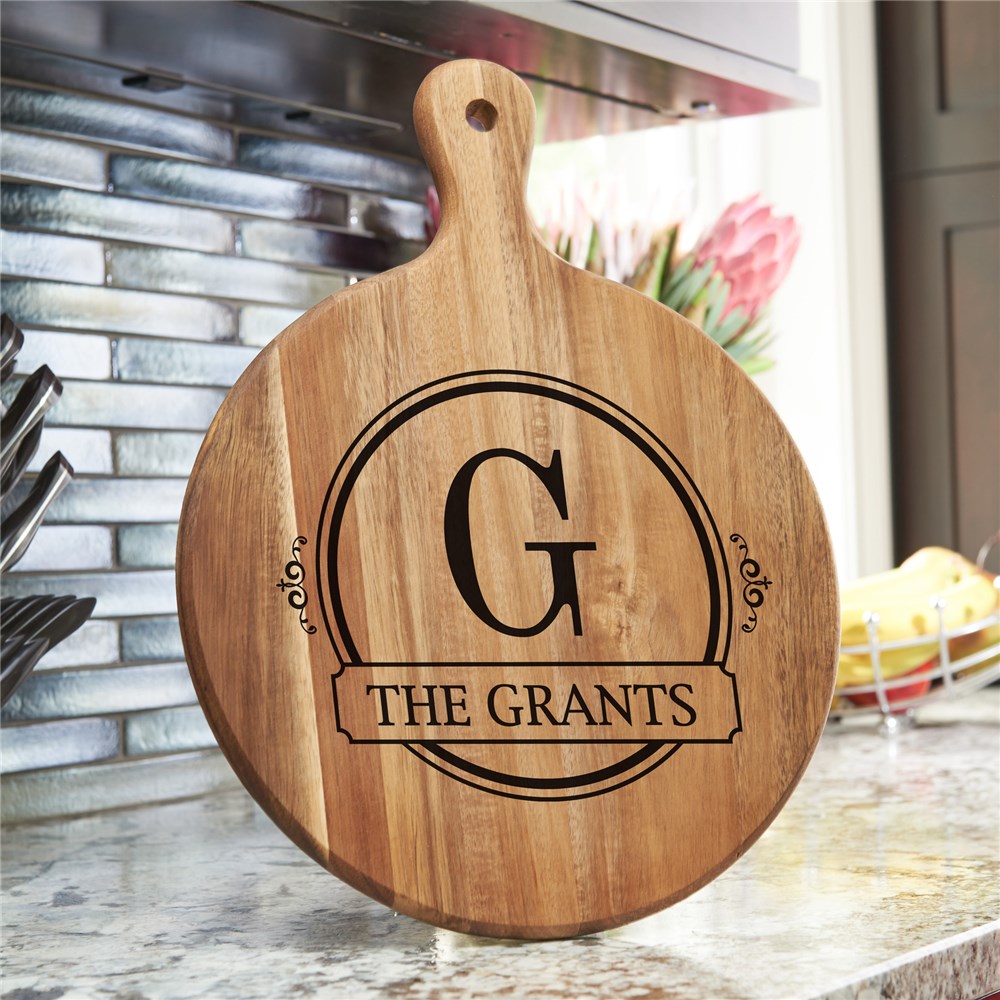 Personalize this acacia paddle with any initial and family name making a unique decor piece for your kitchen.