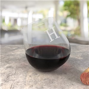 .Circle Initial Whiskey Rocks Glass With Bottom Engraving