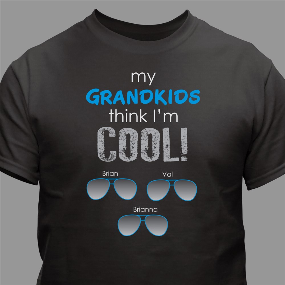 Give an extra boost of confidence with this cool, personalized t-shirt. Our fun Father's Day Shirts make a great gift both parents and Grandparents to enjoy. Grandpa Shirts may be personalized with any title (up to 20 characters) and up to 20 names. (up to 12 characters each) Each name gets its own pair of sunglasses.