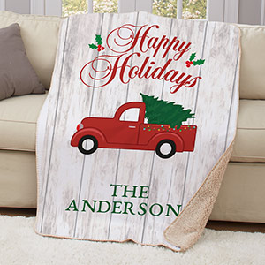 Personalized Happy Holidays Truck Throw | Personalized Blankets