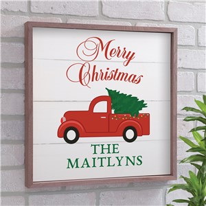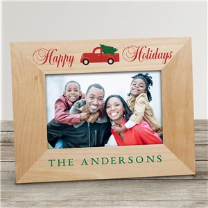 Red Christmas Truck Merry Christmas Or Happy Holidays Wood Picture Frame | Personalized Picture Frames