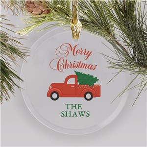 Merry Christmas Or Happy Holidays Choice Glass Personalized Ornament | Red Truck Christmas Decor