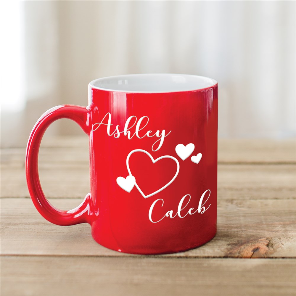 Now you can proudly show off the love of your life on an attractive ceramic mug with our Couples Names With Heart Personalized Red Coffee Mug.