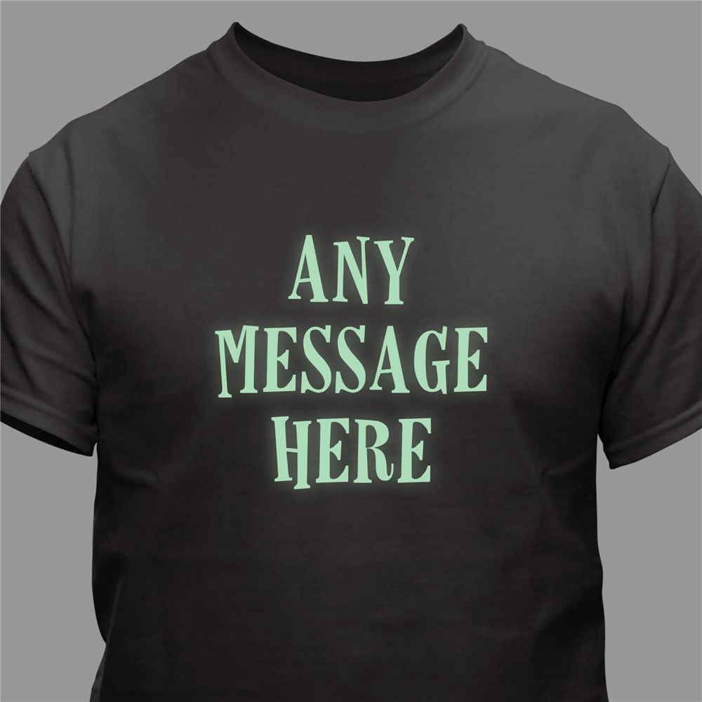 Additional Details Our any message glow in the dark t-shirt is a great festive addition to your wardrobe for Halloween related events. The glow in the dark touch will make your outfit stand out in a spooktacular way!