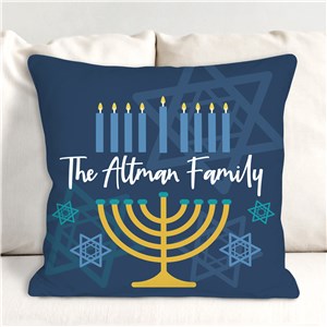Personalized Menorah Happy Hanukkah Throw Pillow