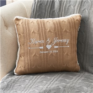 Embroidered Arrows and Heart Wedding Cable Knit Throw Pillow E10430417X