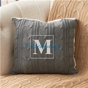 Embroidered Initial Knit Pillow | Embroidered Cable Knit Pillow