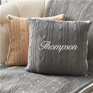 Embroidered Family Name Cable Knit Throw Pillow  E21599417X