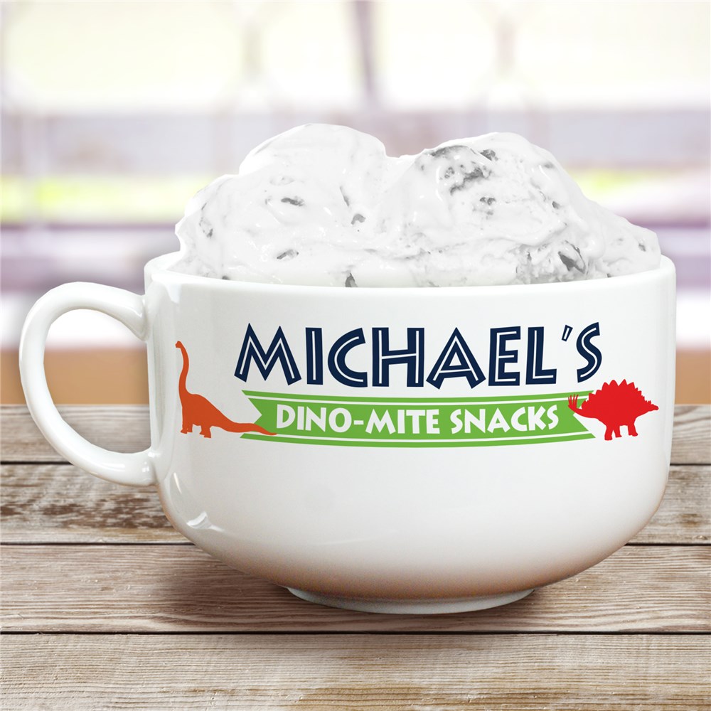 Your youngster will be excited for a yummy snack served in our Personalized Dino-Mite Bowl with Handle.This bowl can be personalized with any name that you choose, making a unique bowl just for them.