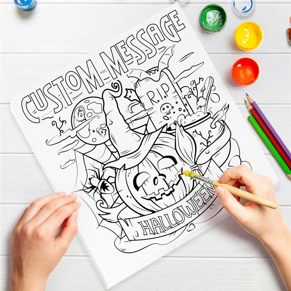 Just choose your artwork and add any custom message in a spooky font of your choice.