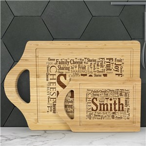 .Engraved Family Sharing Word-Art Bamboo Cheese Carving Board