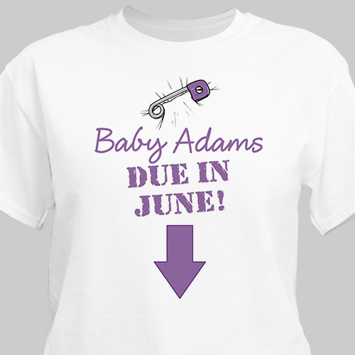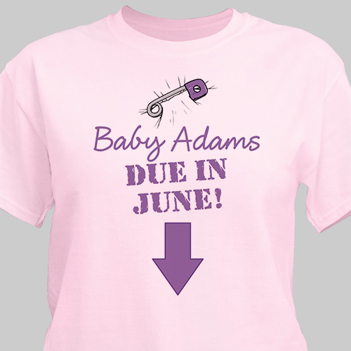 Let everyone know when your bundle of joy is arriving with our Maternity Personalized T-Shirts. The entire family will be counting down the months, days & hours until the new baby arrives. Our Maternity Personalized Shirt is Available on our premium white 100% cotton T-Shirt, machine washable in adult sizes S-3XL. Each new mom shirt ia also available in Pink. Maternity T-shirt includes FREE personalization! Personalize your New Mom Maternity T-Shirt with any name & month.