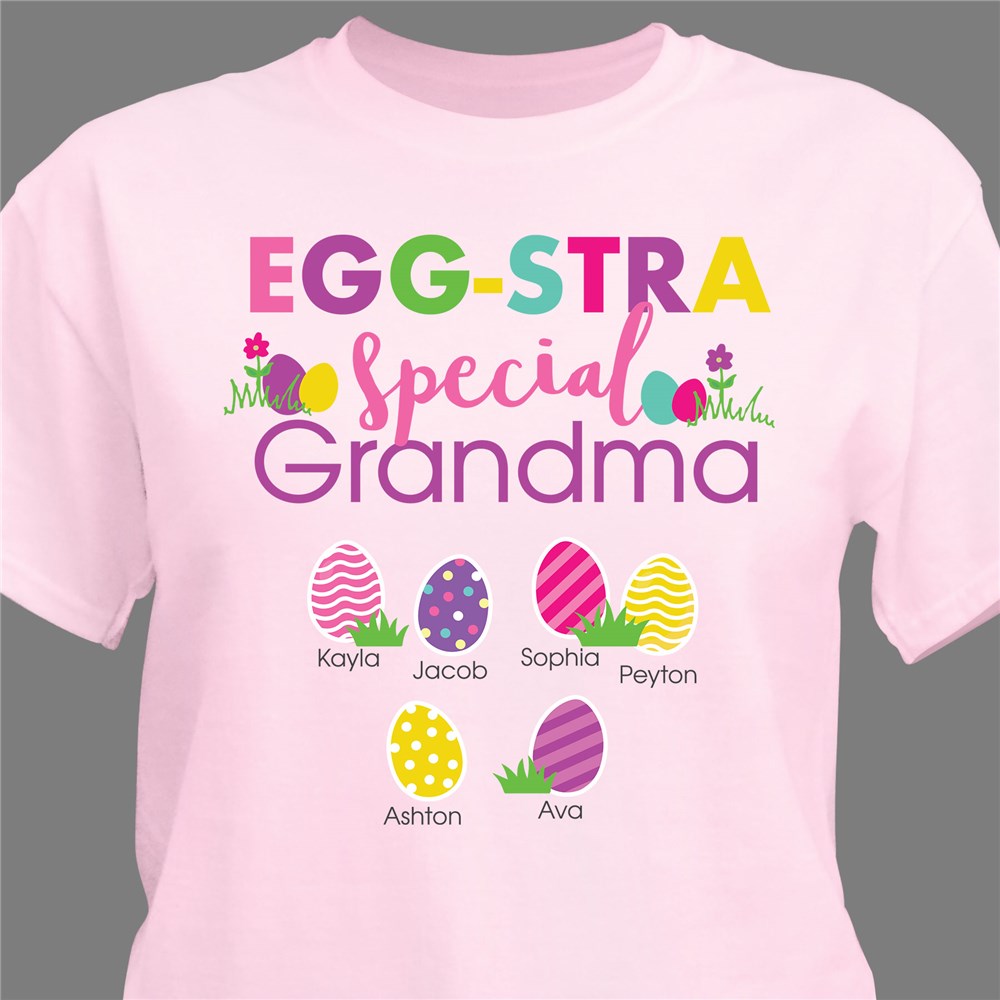 Let the most important woman in your life know how special she is this Easter with our Egg-stra Special Grandma Personalized T-Shirt. Not just for Grandma, our t-shirt can be personalized with any title and up to 20 names. While you show off how important she is, she can show off how important you are to her every time she wears this t-shirt.