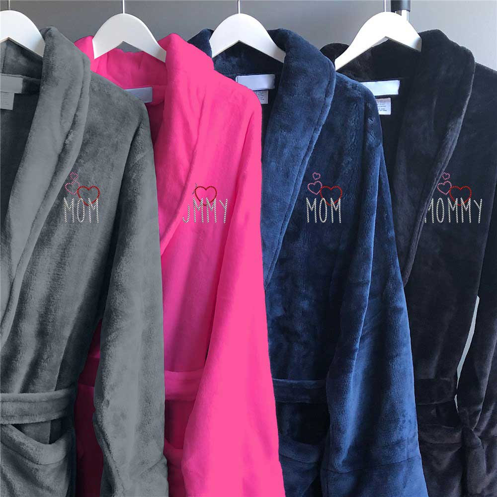 Create a cozy gift for Mom or Grandma with our Embroidered 3 Hearts Microfleece Robe.