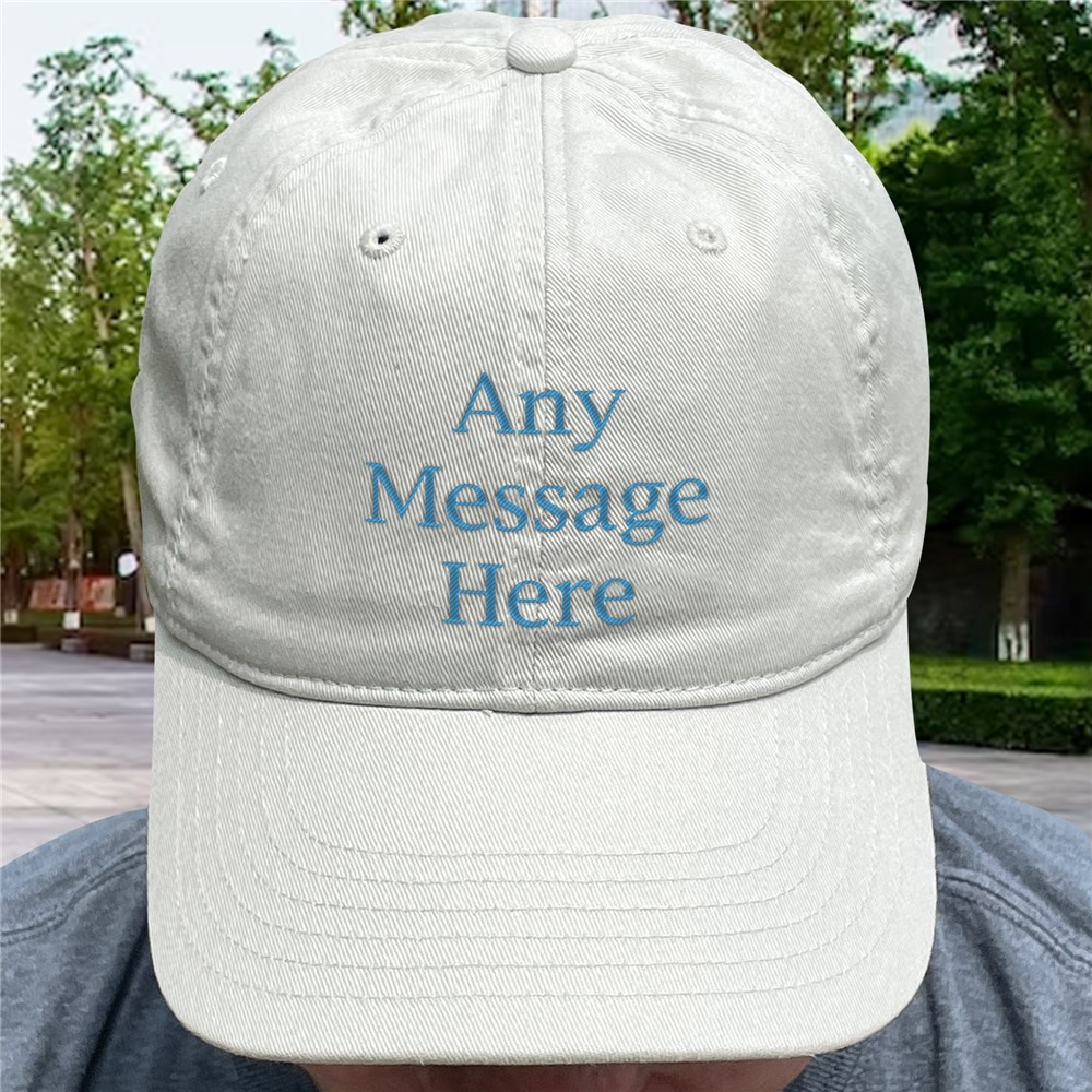 Our Embroidered Any Message Baseball Hat is a versatile gift for anyone on your list!