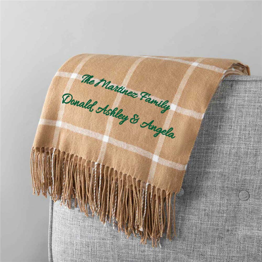 Congratulate any family on their new home or give your own home decor an uplift with our Embroidered Any Message Windowpane Throw Blanket.