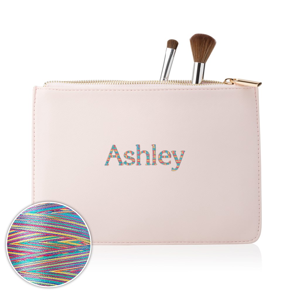 Embroidered Any Name Vegan Leather Clutch with Rainbow Thread