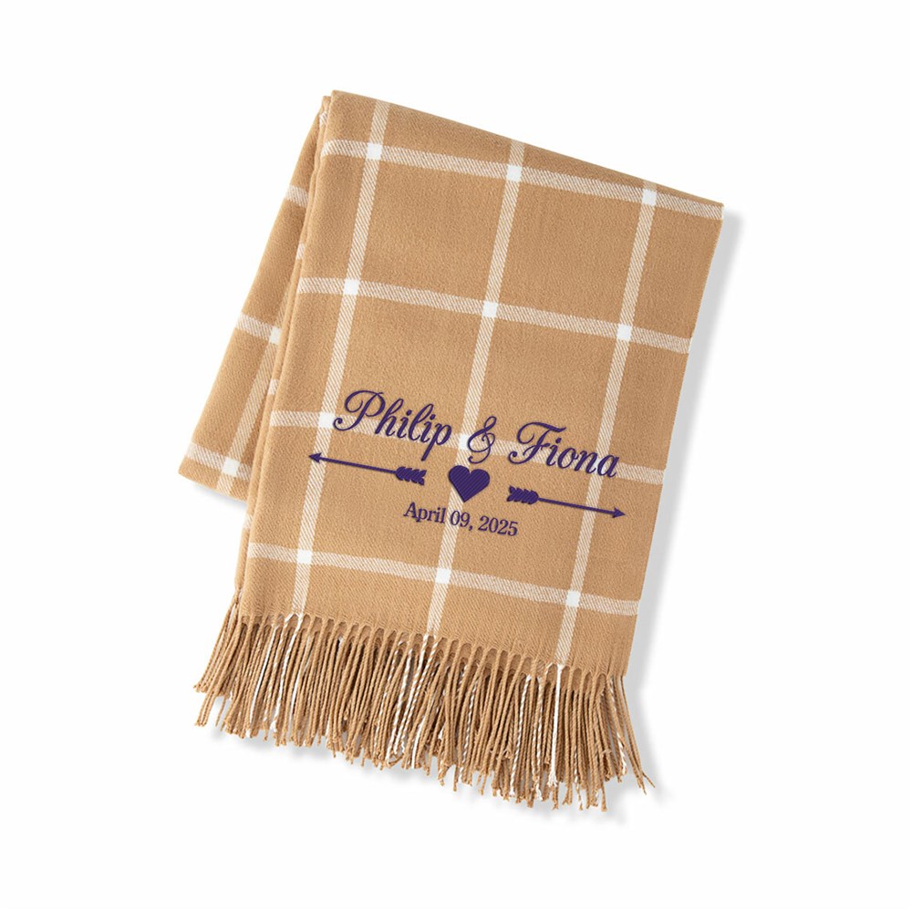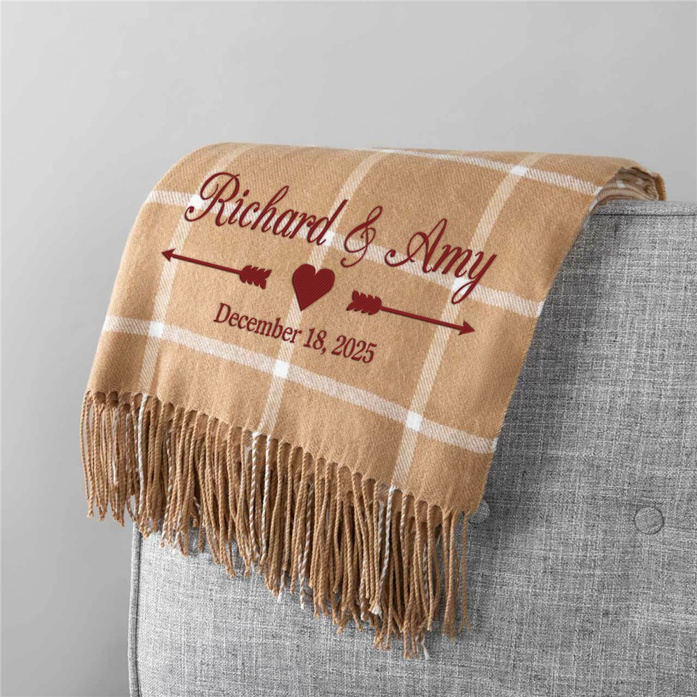 Congratulate the happy couple on their new life together with our Embroidered Arrows and Heart Wedding Windowpane Throw Blanket. Personalize this blanket with any custom message line, any date, and your choice of embroidery thread color.