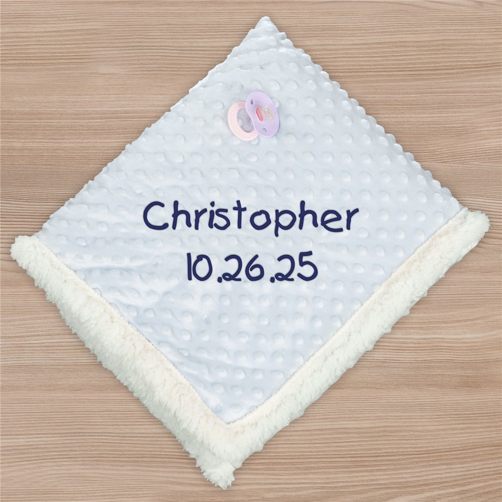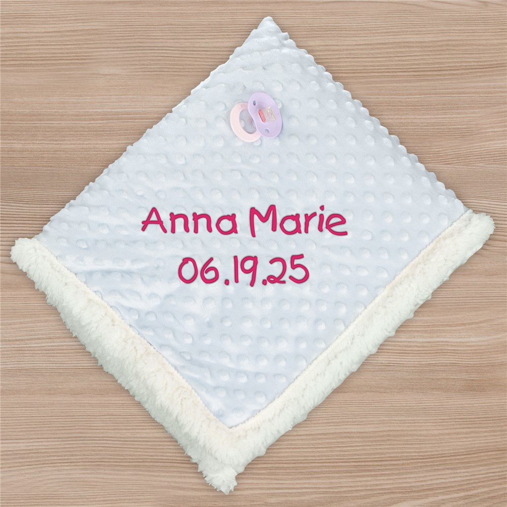Wrap your new bundle of joy in our cuddly Embroidered Baby Name Sherpa Blanket. We will custom embroider these soft Personalized Baby Gifts with your choice of thread color, any name and date on your Sherpa Baby Blanket. Makes a great gift for a baby shower or any new baby in your family.