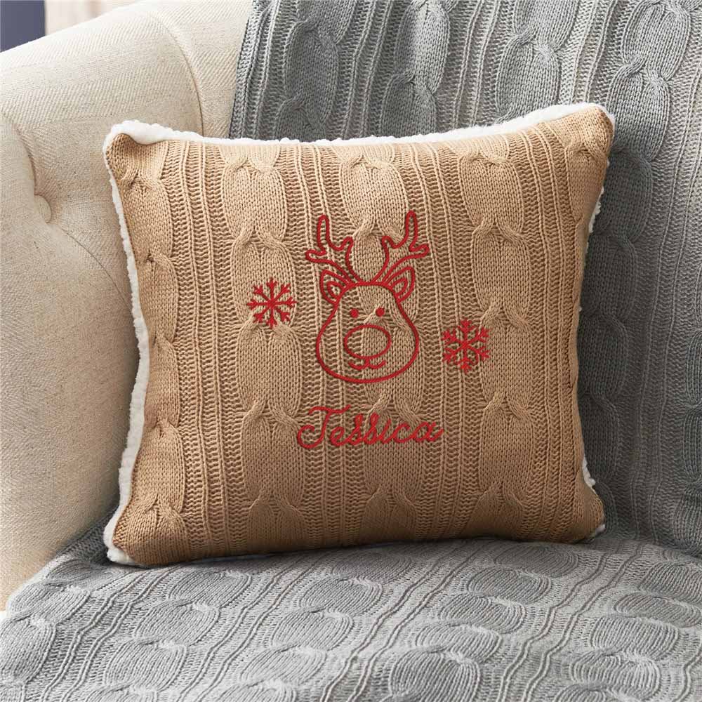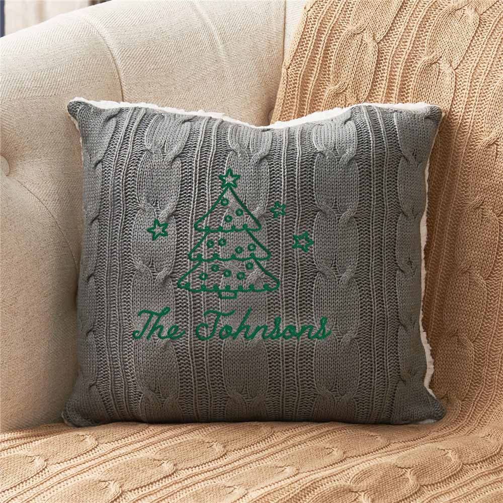 Easily decorate your living room with our Embroidered Christmas Icons Cable Knit Throw Pillow !
